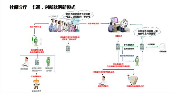 一卡通”平台紧扣“便民”需求,将门诊挂号、就医候诊、医保结算、自助缴费等等就医服务集聚一个平台,通过手机APP、自助一体机等便民终端,让参保群众告别看病就医中的门诊挂号“排长队”、看病候诊“排长队”、医保结算“排长队”、现金缴费“排长队”等各类“排长队”现象,带给参保群众全新的就医服务体验。